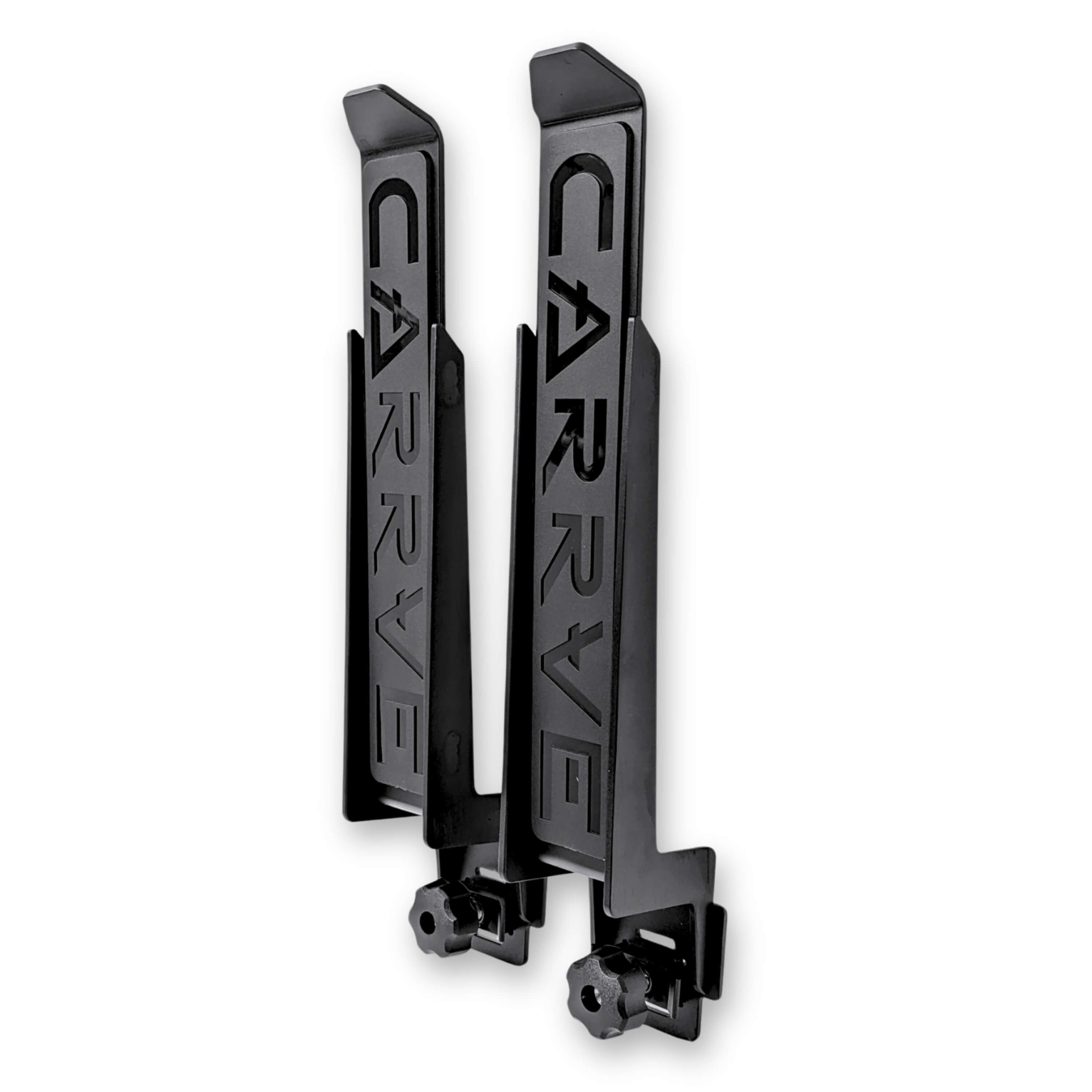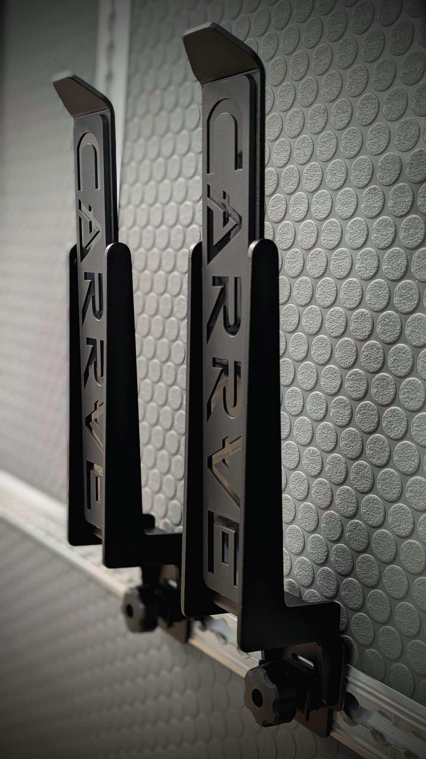 CARRVE accessories are compatible with L-Track and feature an innovative mounting system that securely attaches to both vertical and horizontal L-Track without the need for additional bolts or tools, making it simple to reposition when organizing your gear.